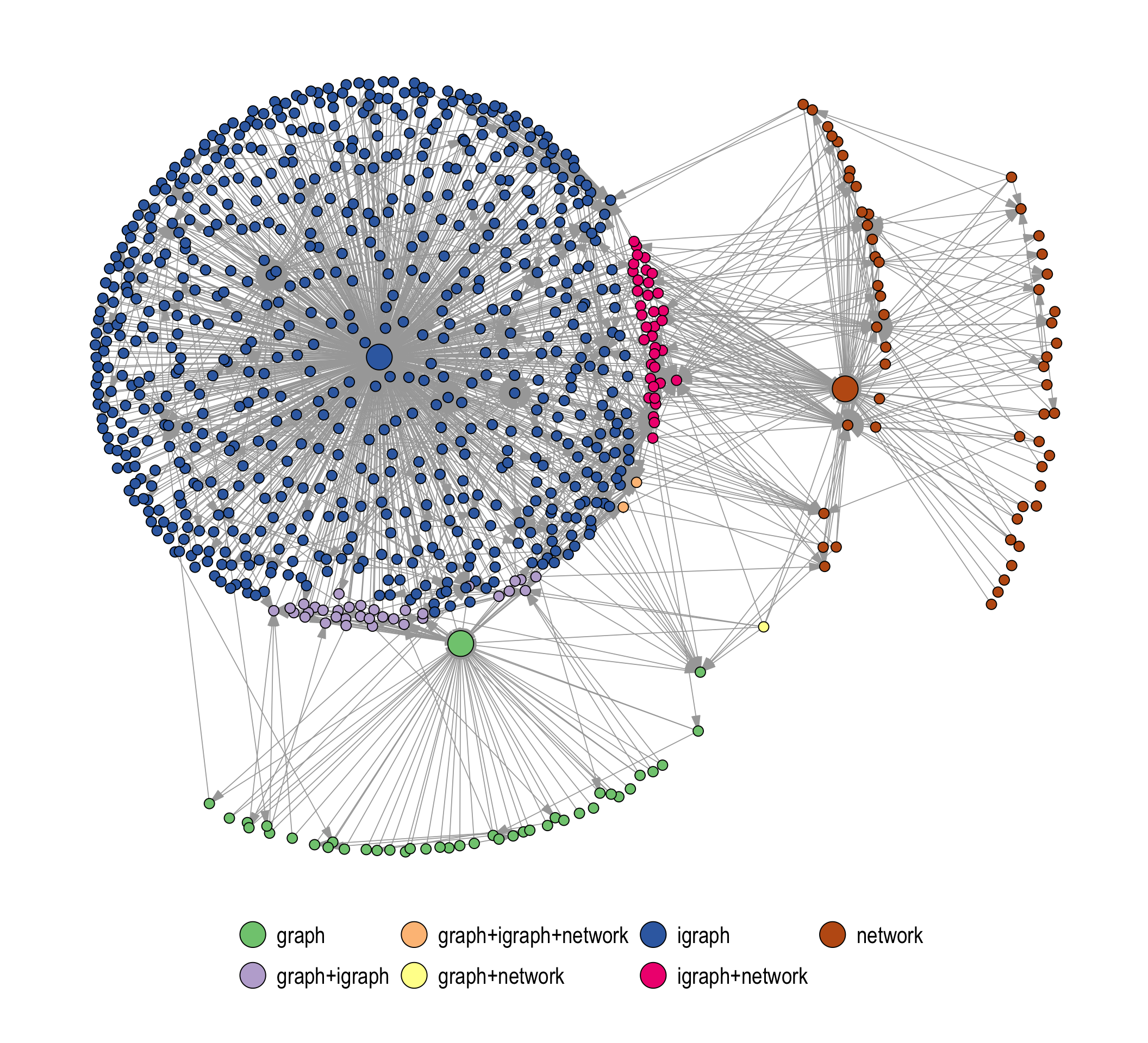 CRAN packages that depend on igraph, network, and graph
