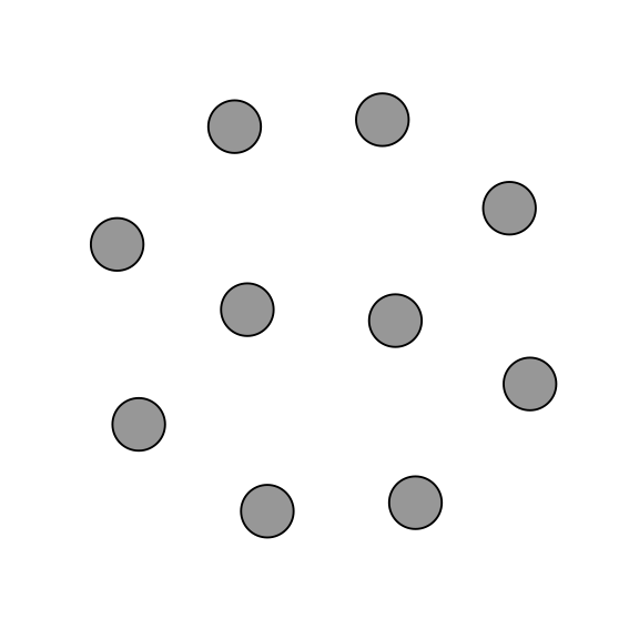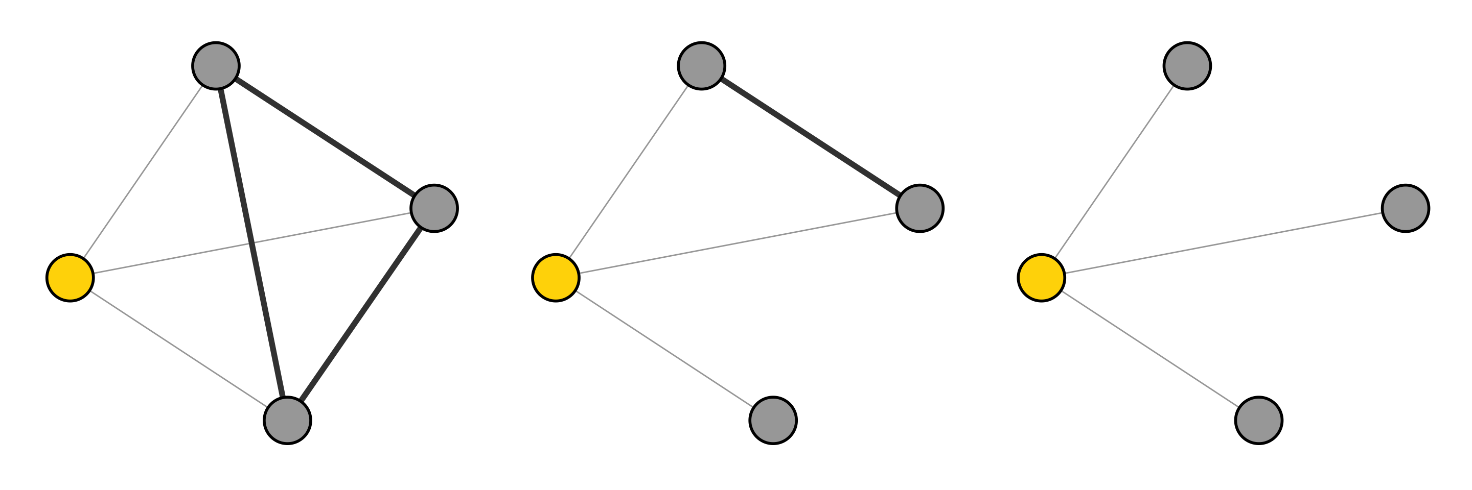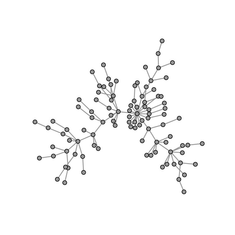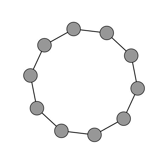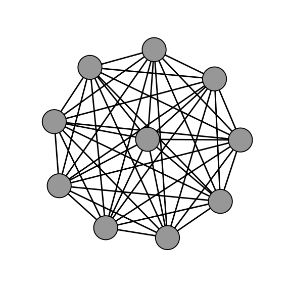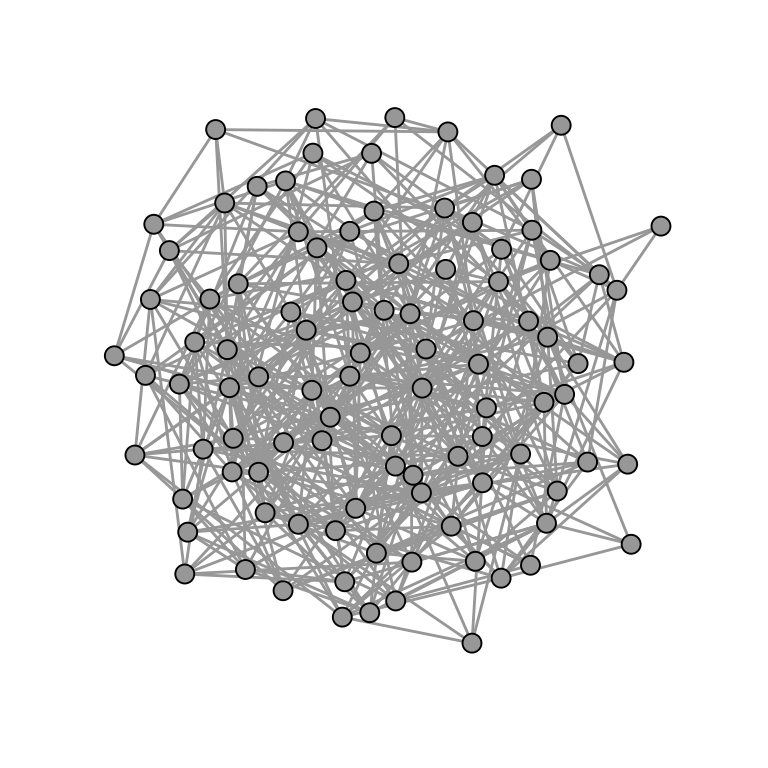 #> 0.60 0.71 0.87 0.24 0.71 0.38 0.49 0.00 0.00In empirical networks, we often observe a tendency towards high transitivity (“the friend of a friend is a friend”)