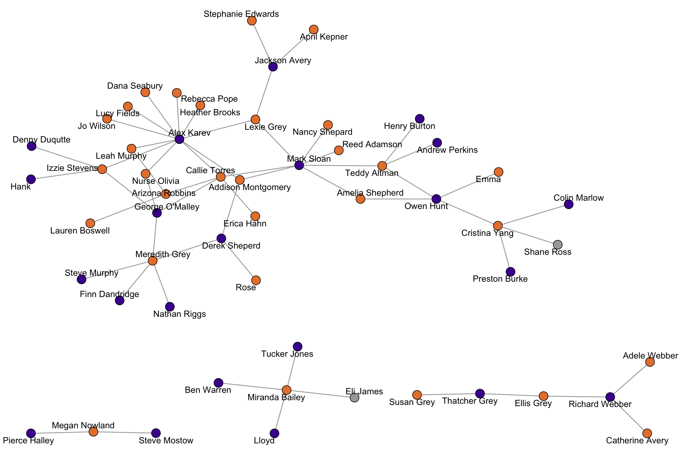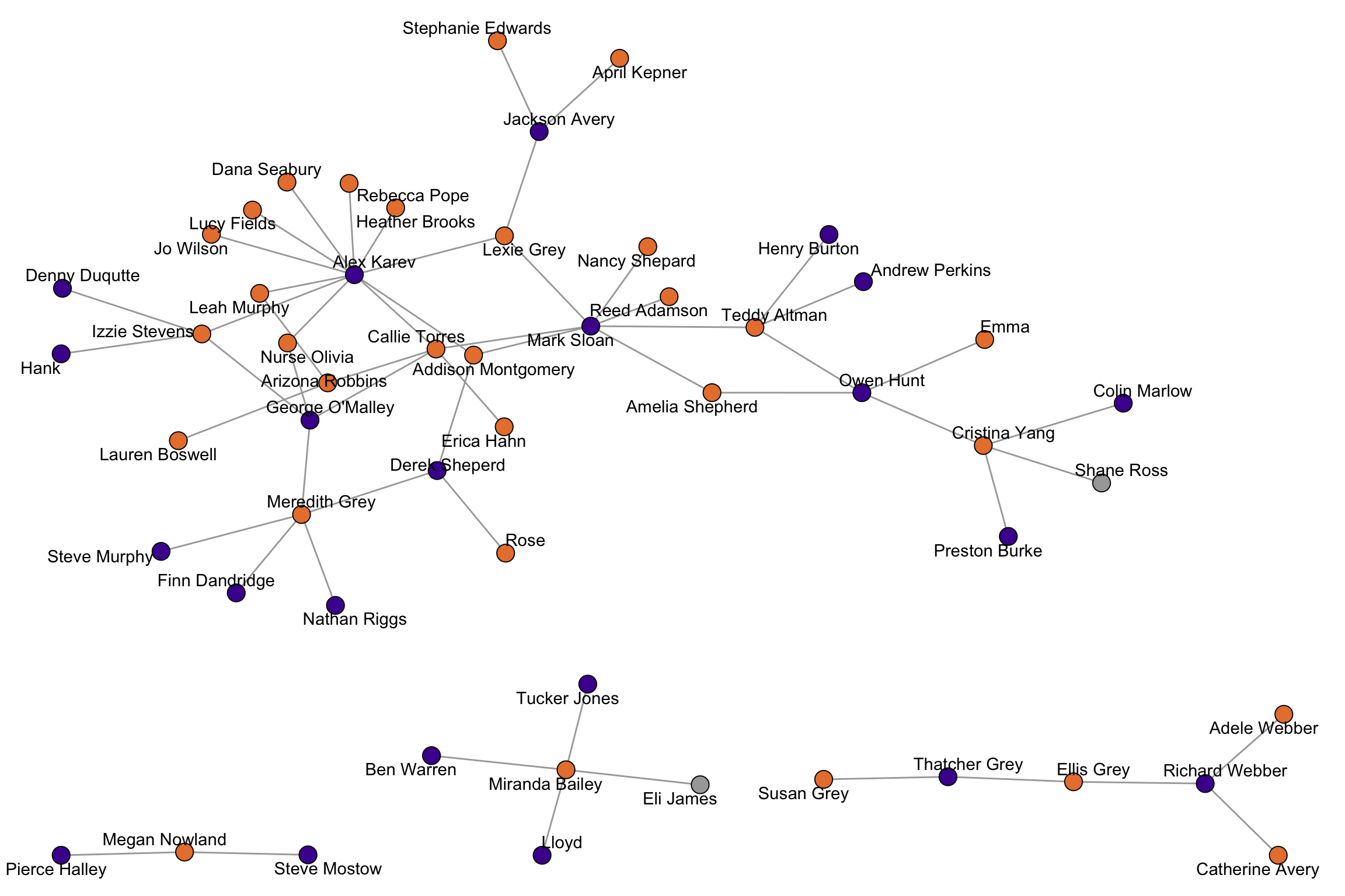#> Arizona Robbins 0The Grey’s Anatomy network is disconnected (4 connected components)
