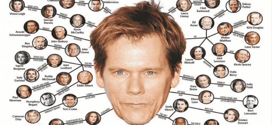 The Bacon number of an actor is their distance to Kevin Bacon in the movie co-appearance network.