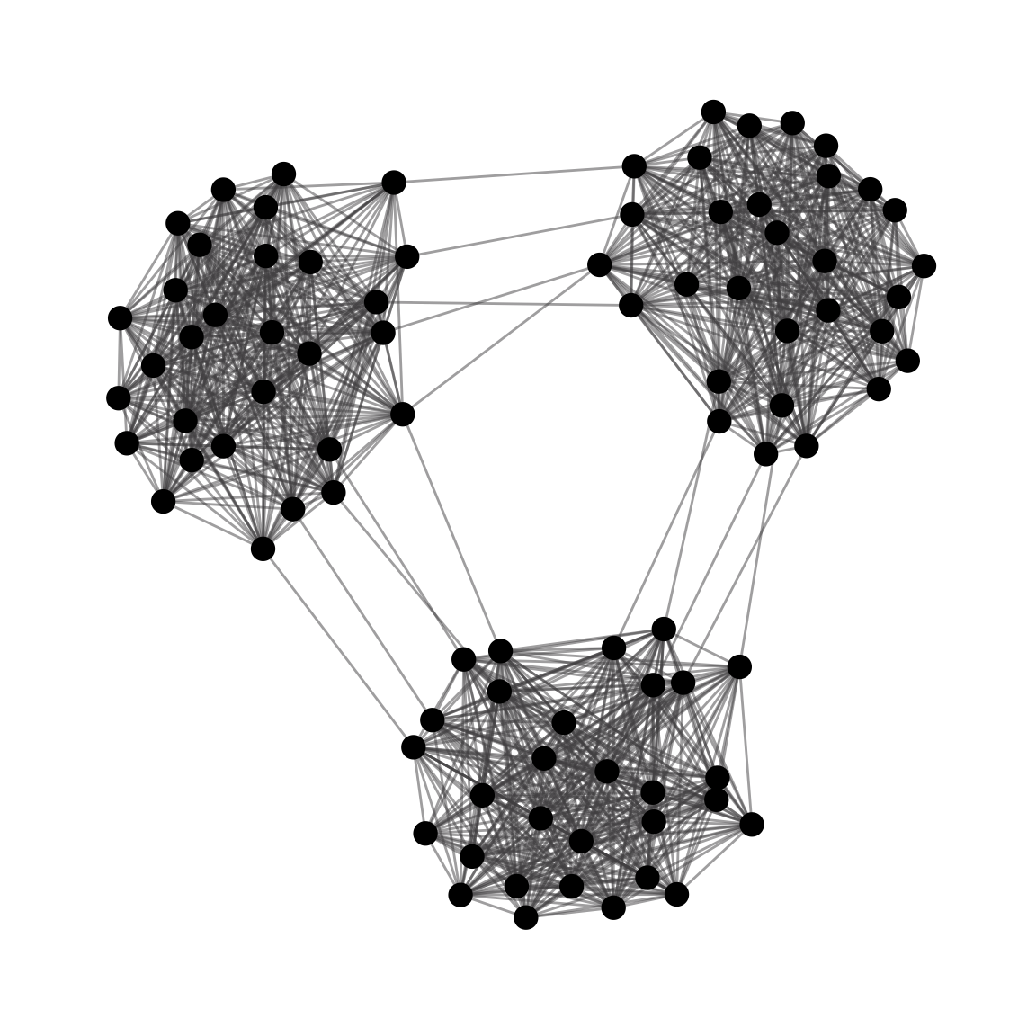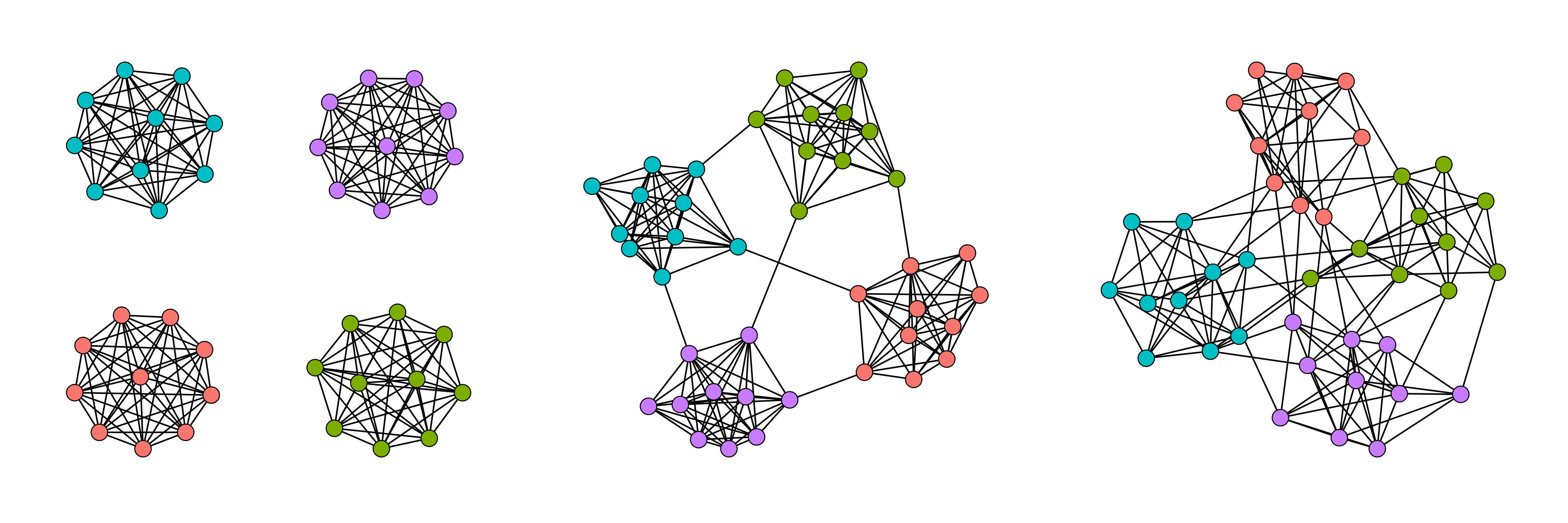 Modularity is defined as the fraction of edges that fall within given groups minus the expected fraction if edges were random