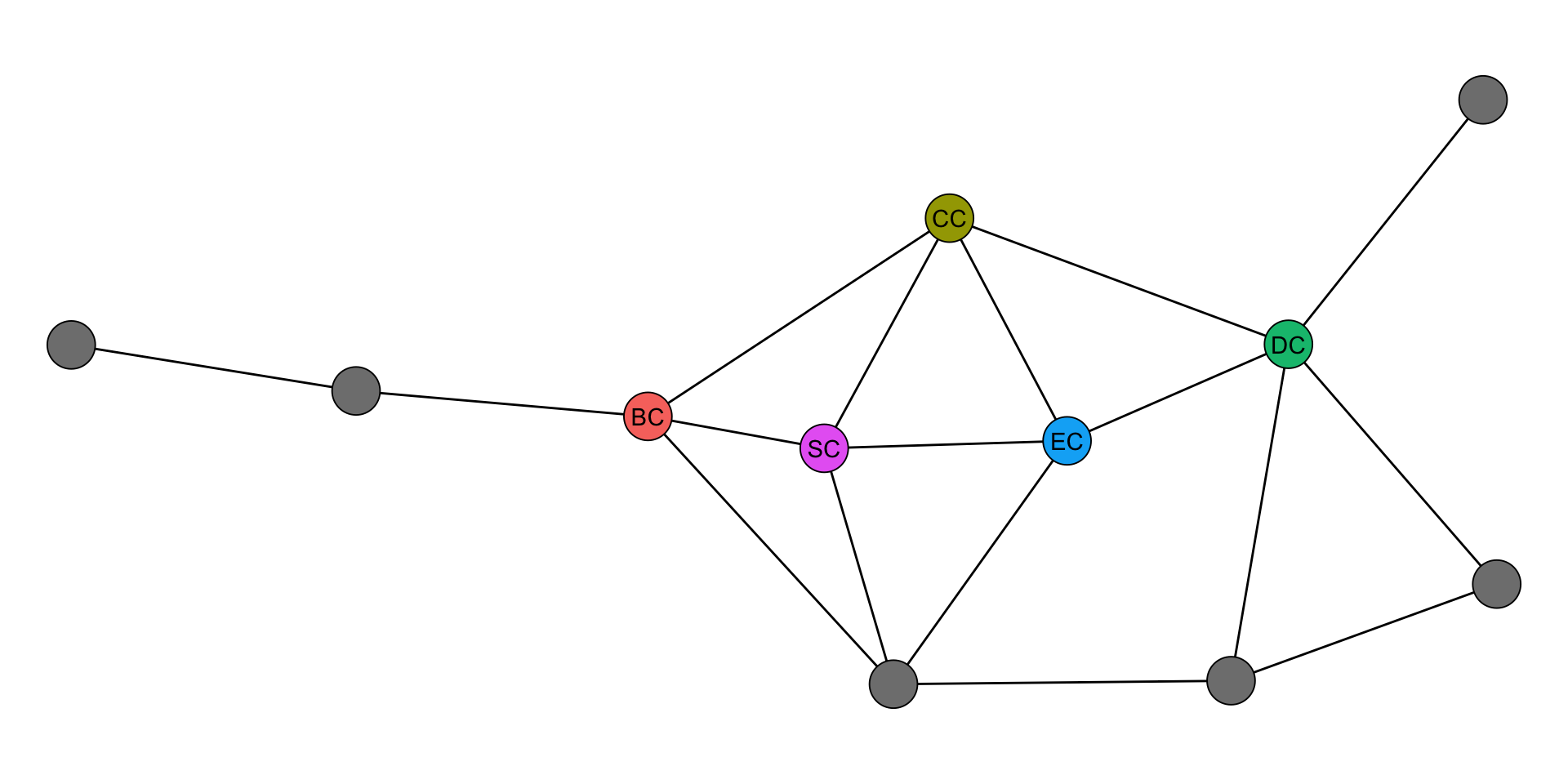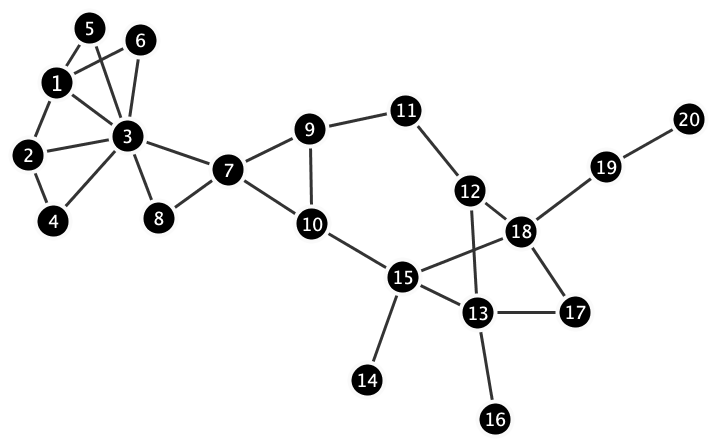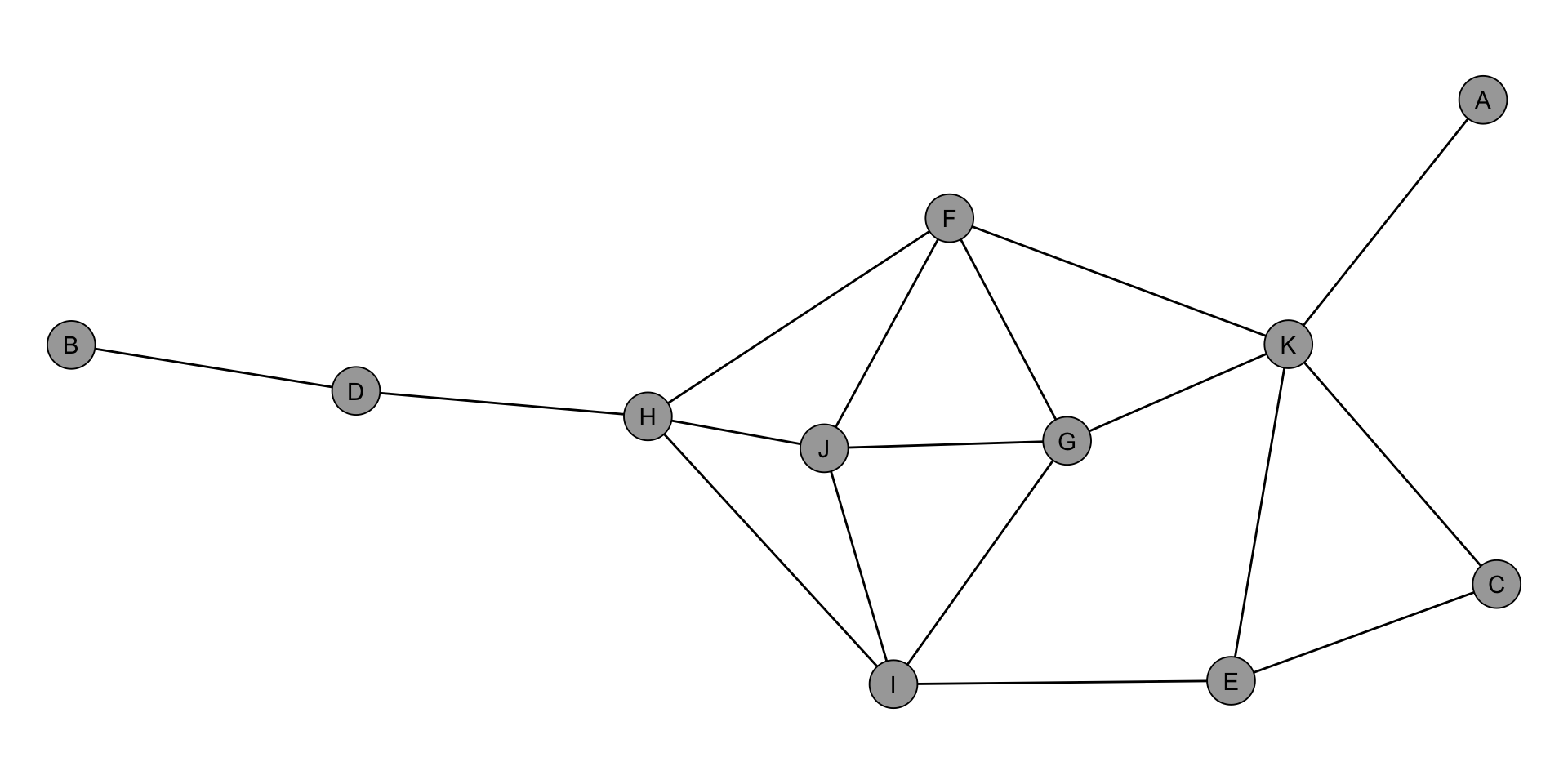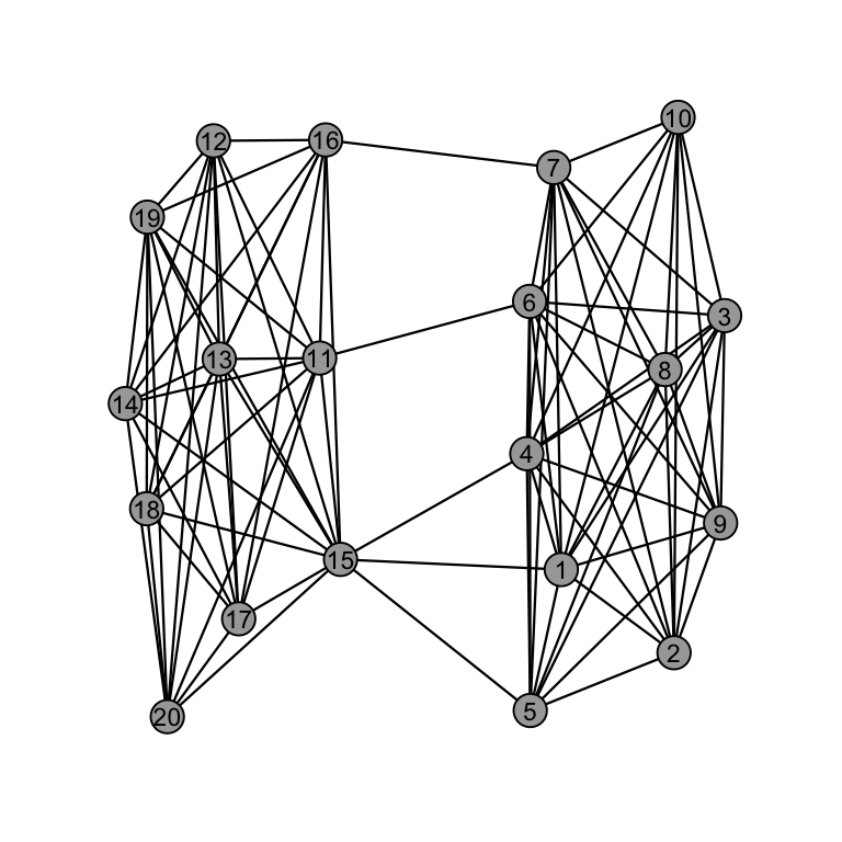 #> [1] 1 2 5 4 3A k-core is a subgraph in which every node has at least k neighbors within the subgraph. A k-core is thus a relaxed version of a clique.
