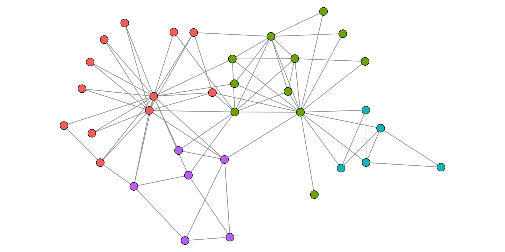 (core-periphery, cohesive subgroups or factions, group brokerage, etc)