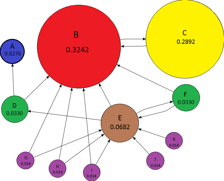 node’s centrality is proportional to sum of centralities of those it has ties to