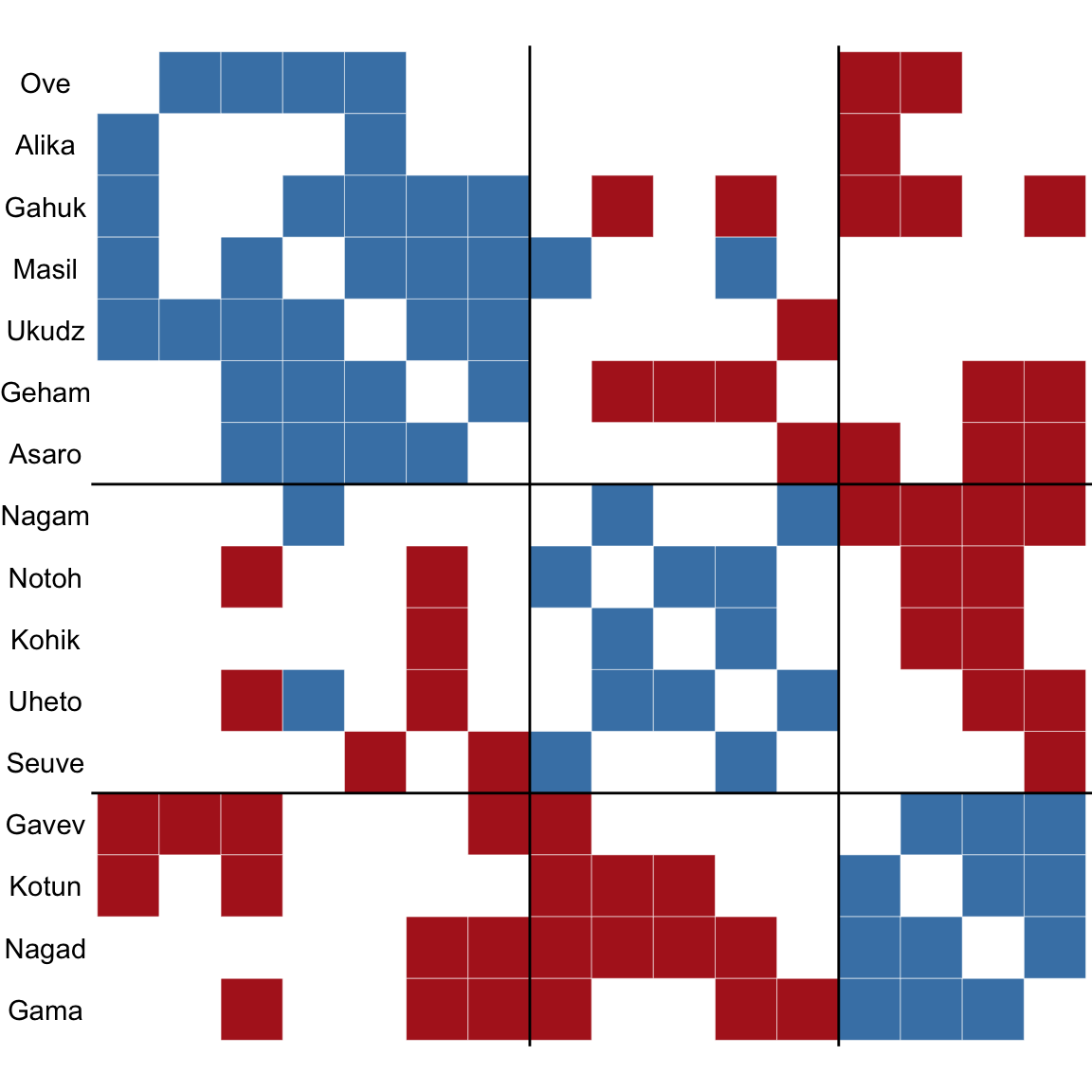 traditional <- signed_blockmodel(g,k = 3,alpha = 0.5,annealing = TRUE)