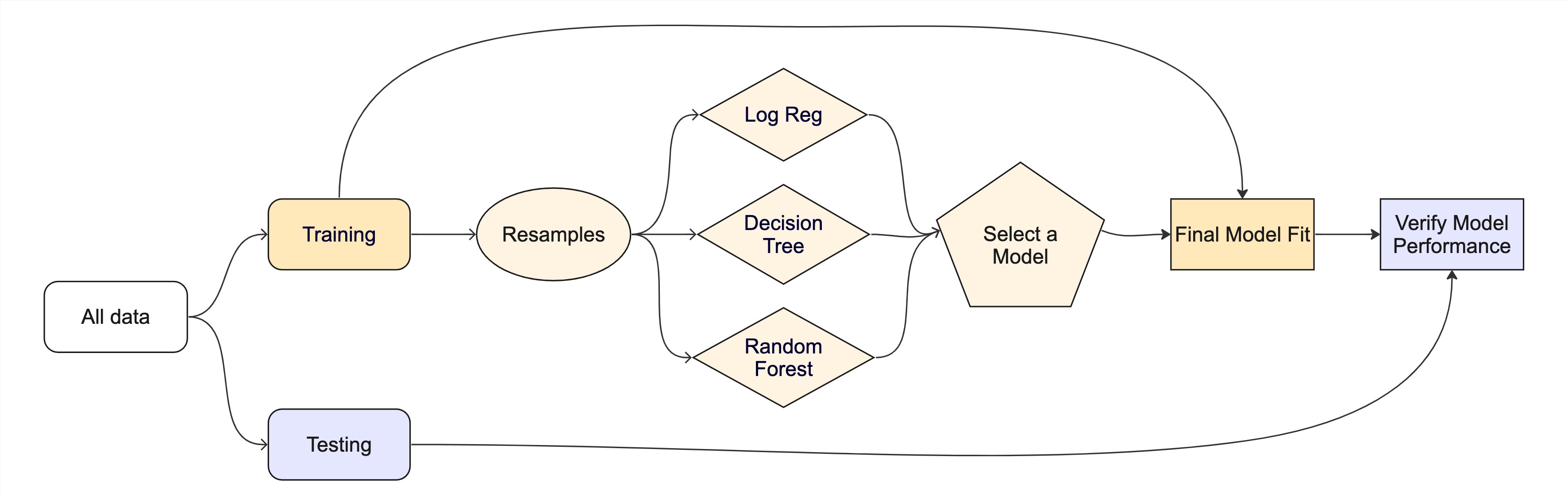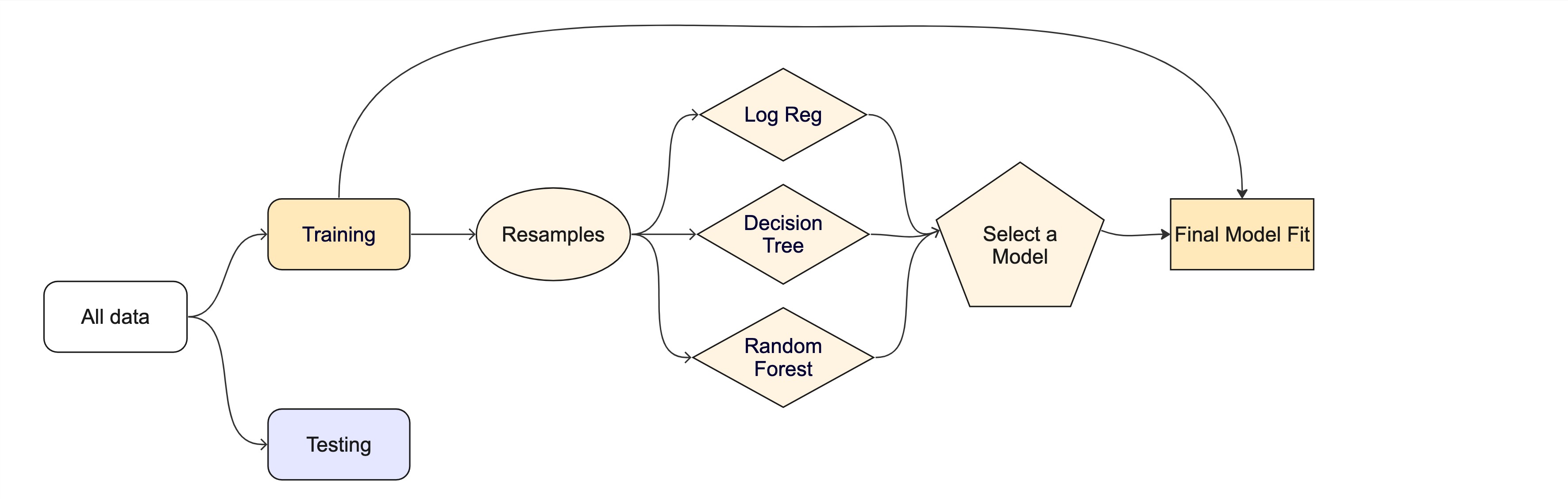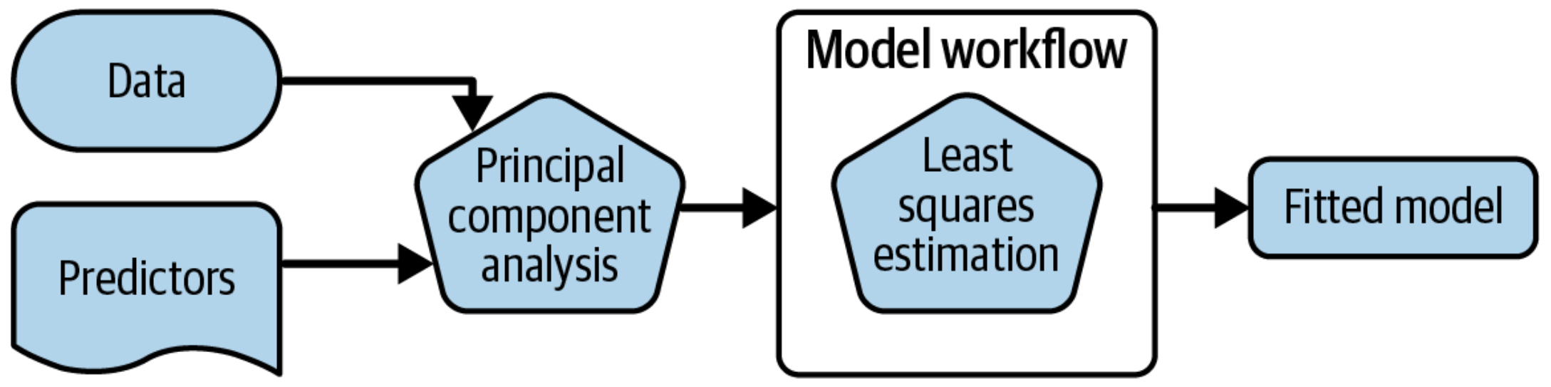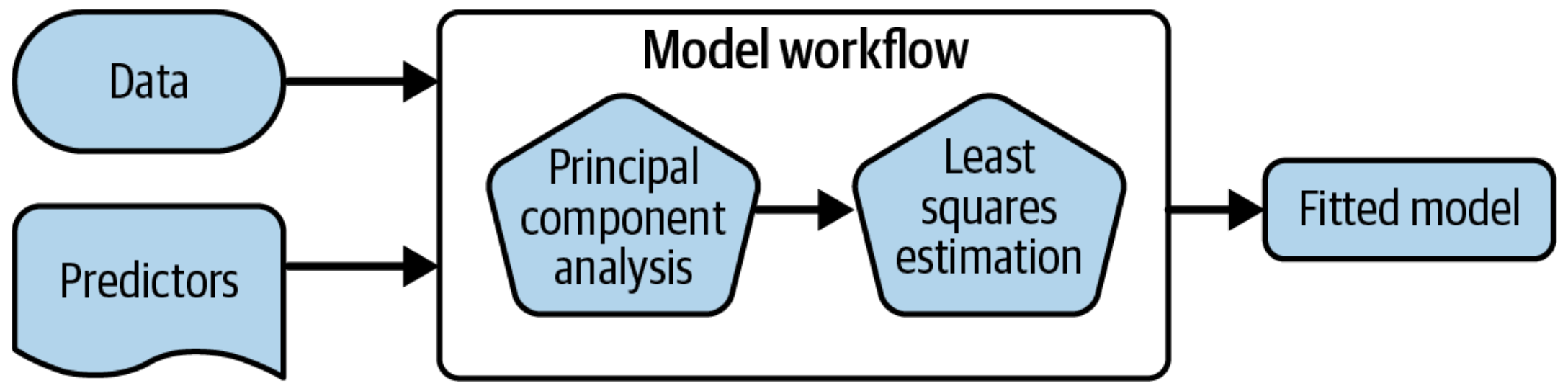 Most importantly, a workflow captures the entire modeling process: fit() and predict() apply to the preprocessing steps in addition to the actual model fit